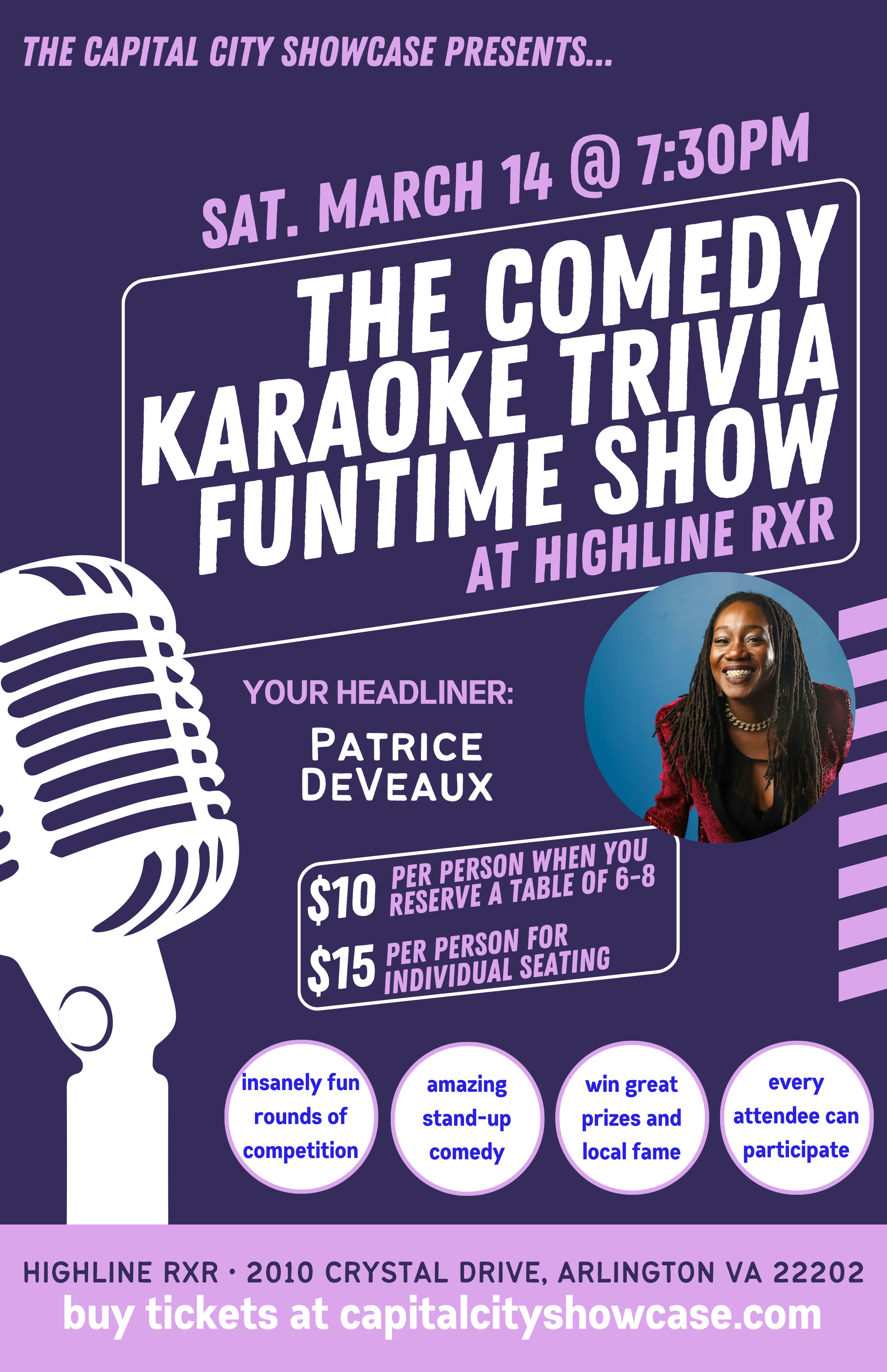 This show also features stand-up comedy from the DC area’s finest comics! March’s headliner is the hilarious Patrice DeVeaux!